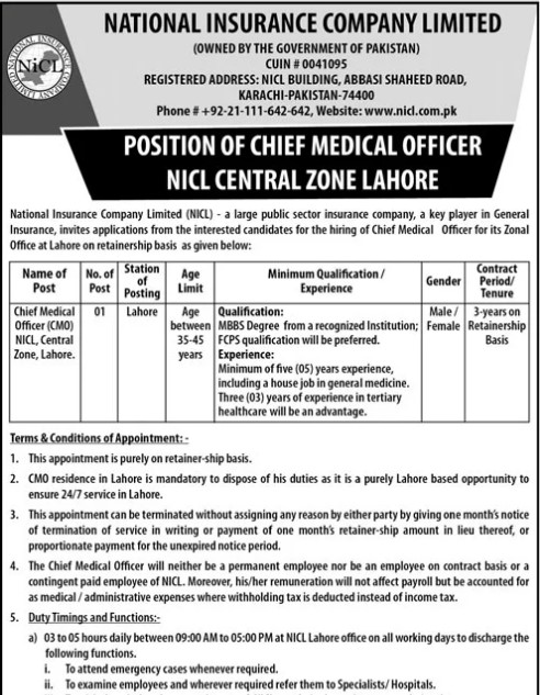 Candidates if you are seeking Insurance Company Lahore Jobs 2025 Apply Online yes. then it would help if you tried to complete this Insurance Company Lahore Jobs because here you can easily apply for this vacancy: Chief Medical Officer.