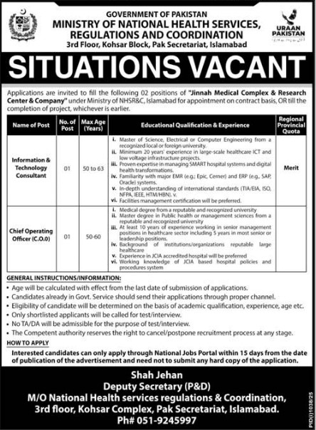 Candidates if you are seeking Jinnah Medical Complex Jobs September 2025 Apply Now yes. then it would help if you tried to complete this Jinnah Medical Complex Jobs because here you can easily apply for these vacancies: Information & Technology Consultant and Chief Operating Officer (C.0.0).